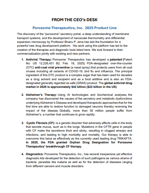 "State of Science at Porosome Therapeutics, Inc. 2025”, an Introduction by Guillermo Marmol, CEO. Guests in Attendance: J. P. Morgan Executives